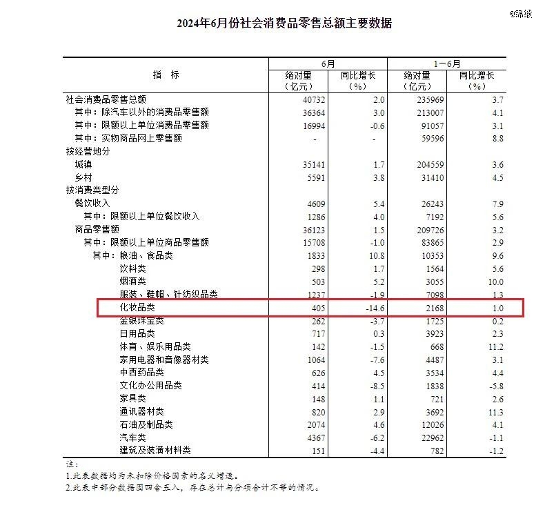 而且,上半年我國社會消費品零售總額2.36萬億元,同比增長3.7%。而化妝品類零售總額為2168億元,較去年同期僅僅微增1%,已經(jīng)跑輸大盤。