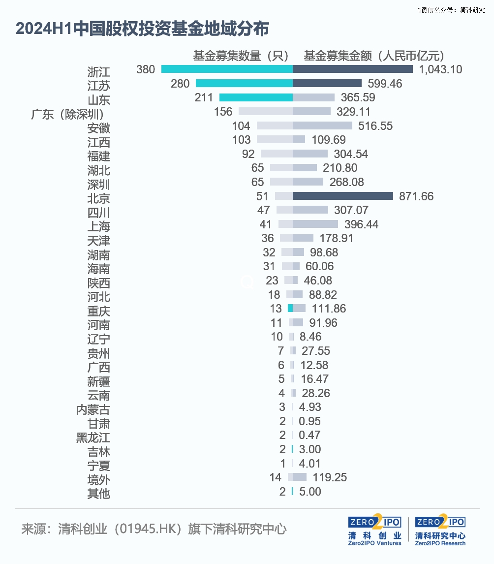 2024年上半年,全國各地的新募基金數(shù)量和募資規(guī)模普遍出現(xiàn)不同程度的下降。但總體來看,浙江、江蘇、山東、廣東等地募資情況仍相對(duì)*。其中,浙江上半年新募基金數(shù)量*全國,共380只基金完成新一輪募集,但同比降幅達(dá)49.3%;募資規(guī)模為1,043.10億元人民幣,同比雖下滑12.5%,卻是全國*一個(gè)募資規(guī)模超過千億的地區(qū)。江蘇、山東兩地的新募集基金數(shù)量*于其他地區(qū),基金數(shù)量均超過200只,但同比降幅均在40%以上。2024年上半年,北京共計(jì)51只基金完成新一輪募集,同比小幅提高4.1%。在多只國資背景管理人發(fā)起設(shè)立的大額基金影響下,北京募資規(guī)模達(dá)到871.66億元人民幣,位居全國第二位。