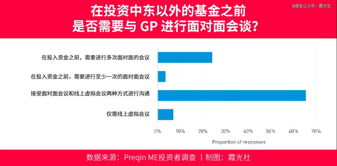 根據(jù)私募數(shù)據(jù)巨頭Preqin(睿勤)發(fā)布的《中東融資指南》顯示,25%的中東投資人,認(rèn)為在投資中東地區(qū)以外的GP之前,需要經(jīng)過多輪的面對面會議;而僅有不到10%的投資人,認(rèn)為僅進(jìn)行線上虛擬會議即可。