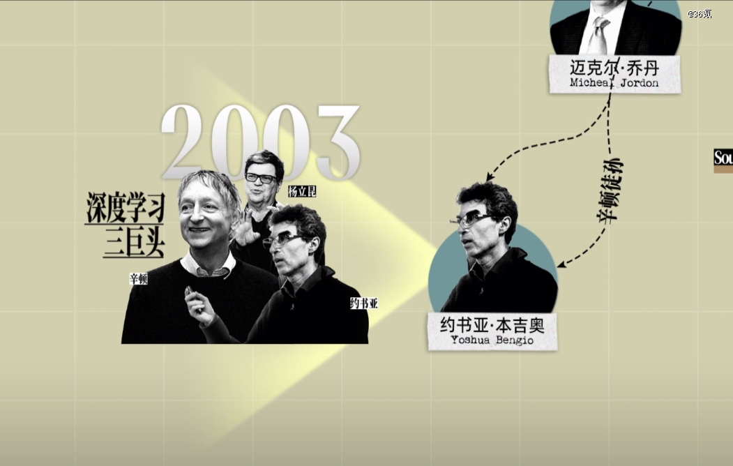 當(dāng)時(shí)辛頓的半個(gè)學(xué)生楊立昆,和另一位徒孫約書亞·本吉奧,也加入了他的隊(duì)伍。所以早在20年前的2003年,“深度學(xué)習(xí)三巨頭”(楊立昆、約書亞、辛頓),就已經(jīng)坐上了同一張牌桌。