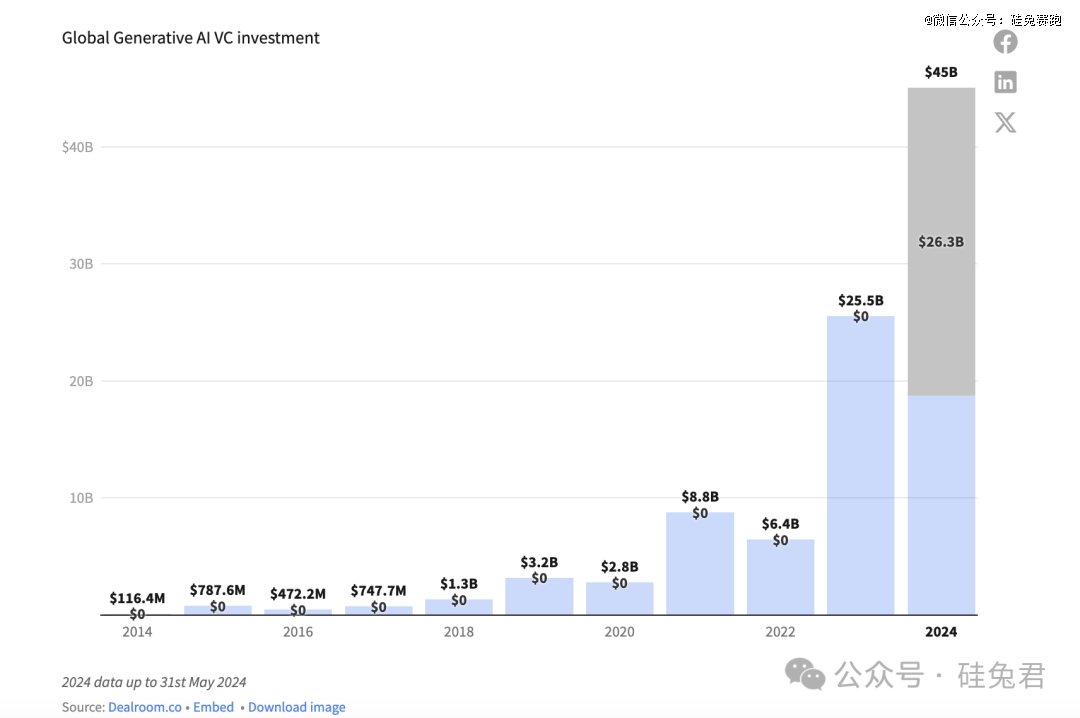 圖注:全球生成式AI創(chuàng)企VC投資總額 來源:Dealroom