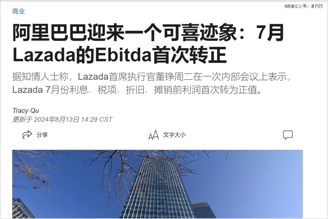 據(jù)悉,阿里國際商業(yè)旗下跨境電商平臺(tái)Lazada已實(shí)現(xiàn)盈利,在今年7月錄得EBITDA(息稅折舊攤銷前利潤)轉(zhuǎn)正。2022年,Lazada曾宣布泰國業(yè)務(wù)已實(shí)現(xiàn)盈利。而2023年以來,阿里巴巴多次在財(cái)報(bào)中表示Lazada虧損持續(xù)收窄,在2024年二季度終于露出盈利的破曉曙光。