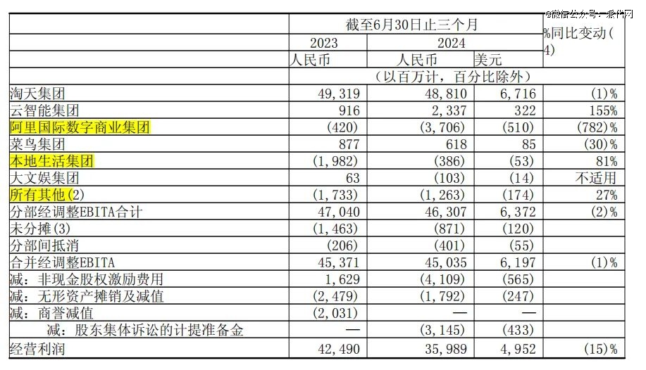虧損的業(yè)務(wù)具體包括阿里國際數(shù)字商業(yè)集團(tuán)、本地生活集團(tuán)、大文娛集團(tuán)、所有其他(包括高鑫零售、盒馬、阿里健康、靈犀互娛、銀泰、UC、夸克、飛豬、釘釘)。