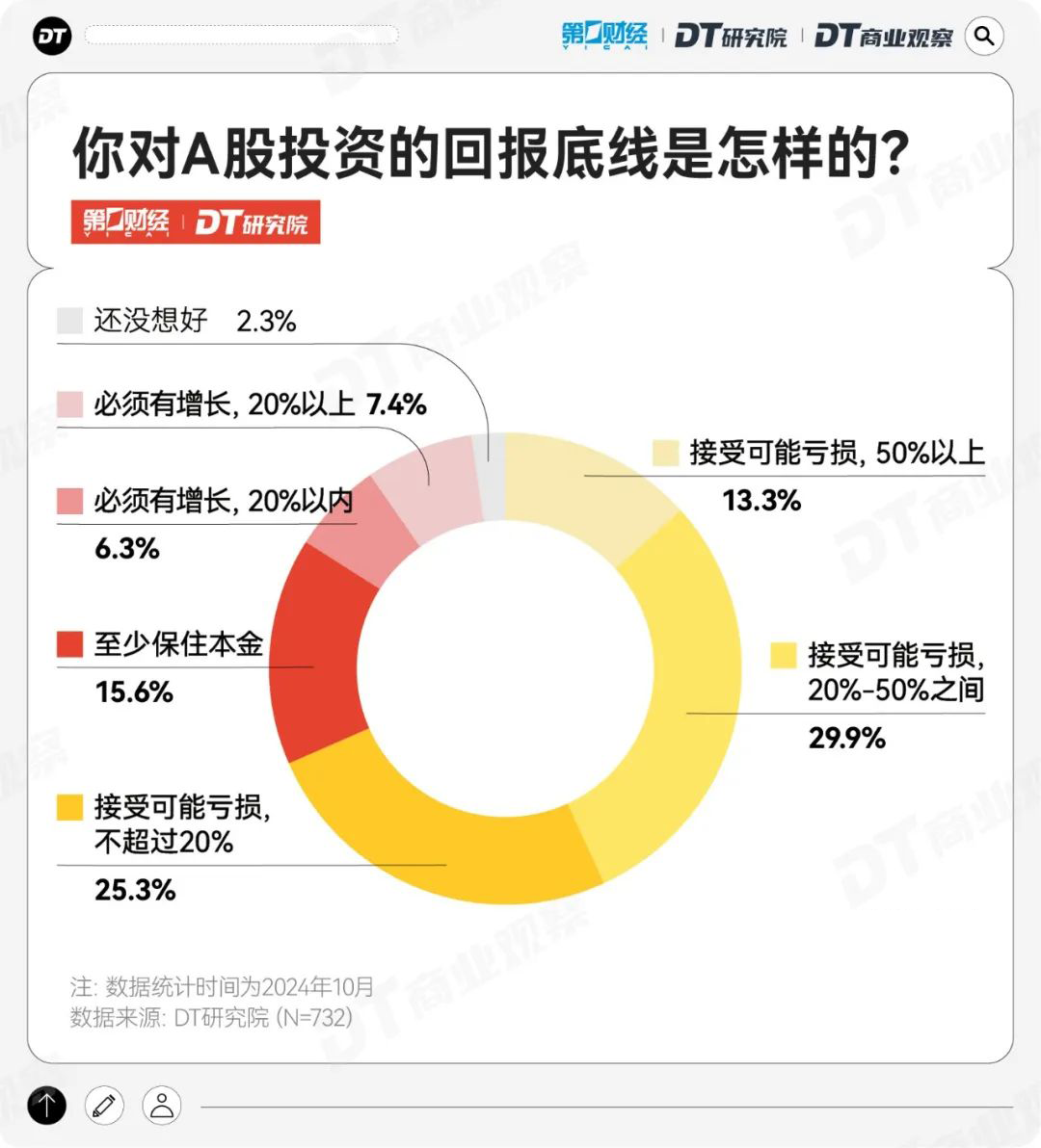 調(diào)研數(shù)據(jù)顯示,68.5%的人接受炒股可能帶來的虧損,15.6%的人希望至少保住本金,只有13.7%的人,追求*的收益增長。