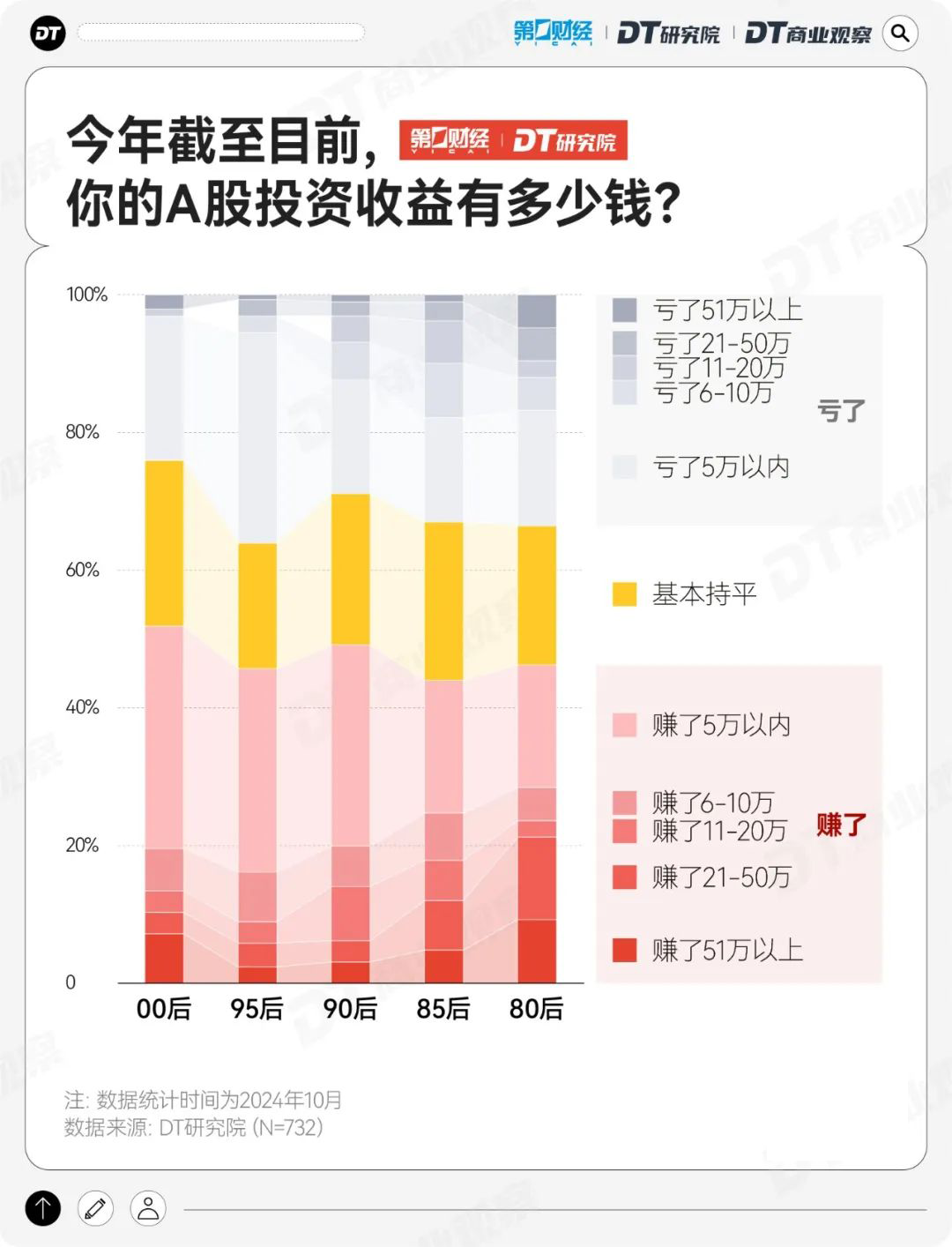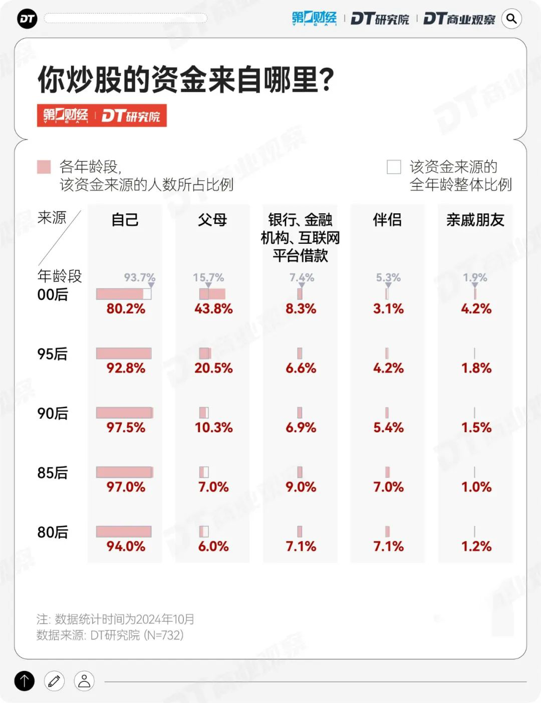 在DT研究院的調(diào)研對象中,2024年沖進股市的“新股民”里,95后和00后的占比超過6成。