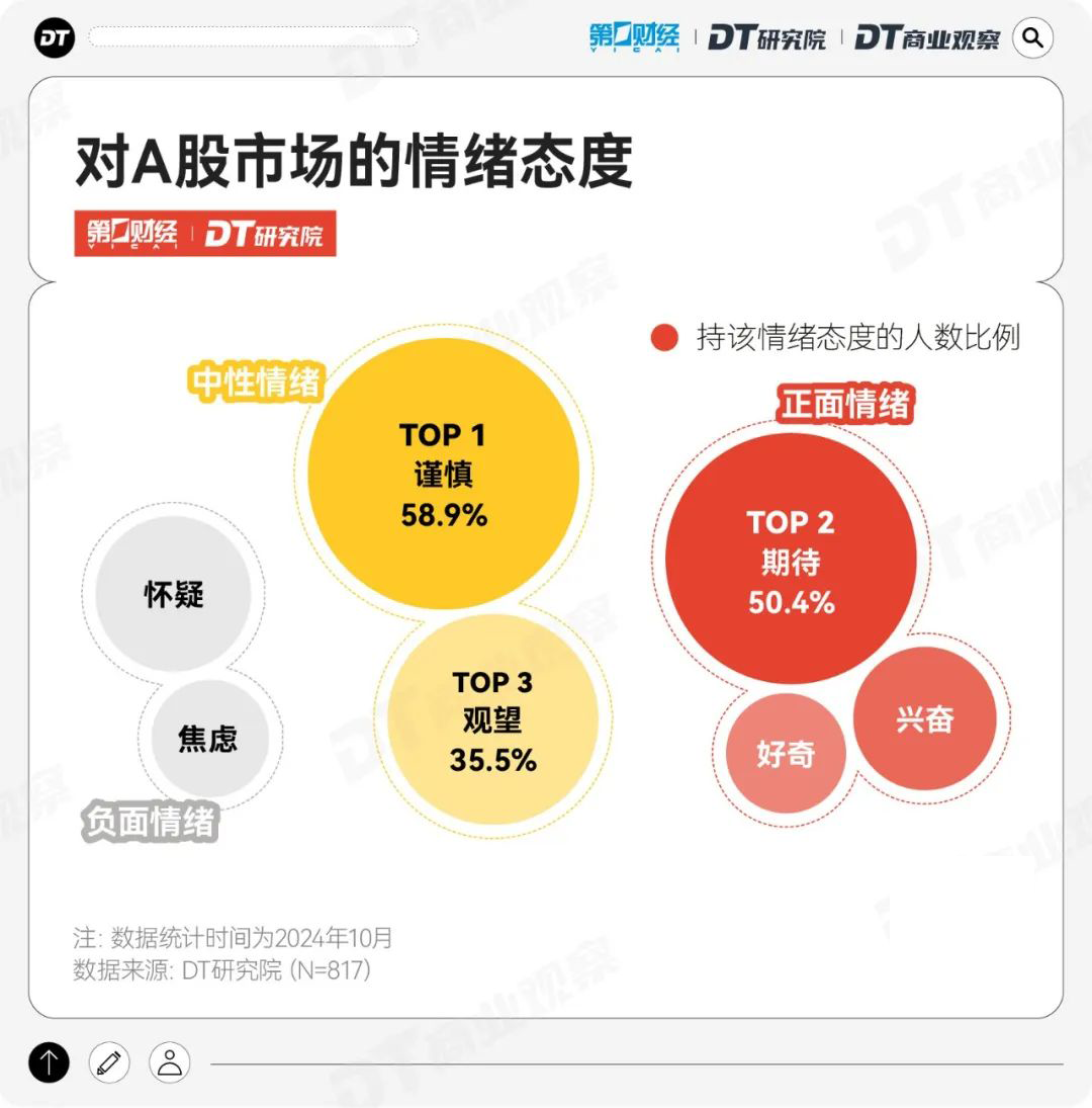 調(diào)研數(shù)據(jù)顯示,58.9%的人對A股保持謹慎態(tài)度,50.4%的人懷有期待,35.5%的人選擇了觀望態(tài)度。