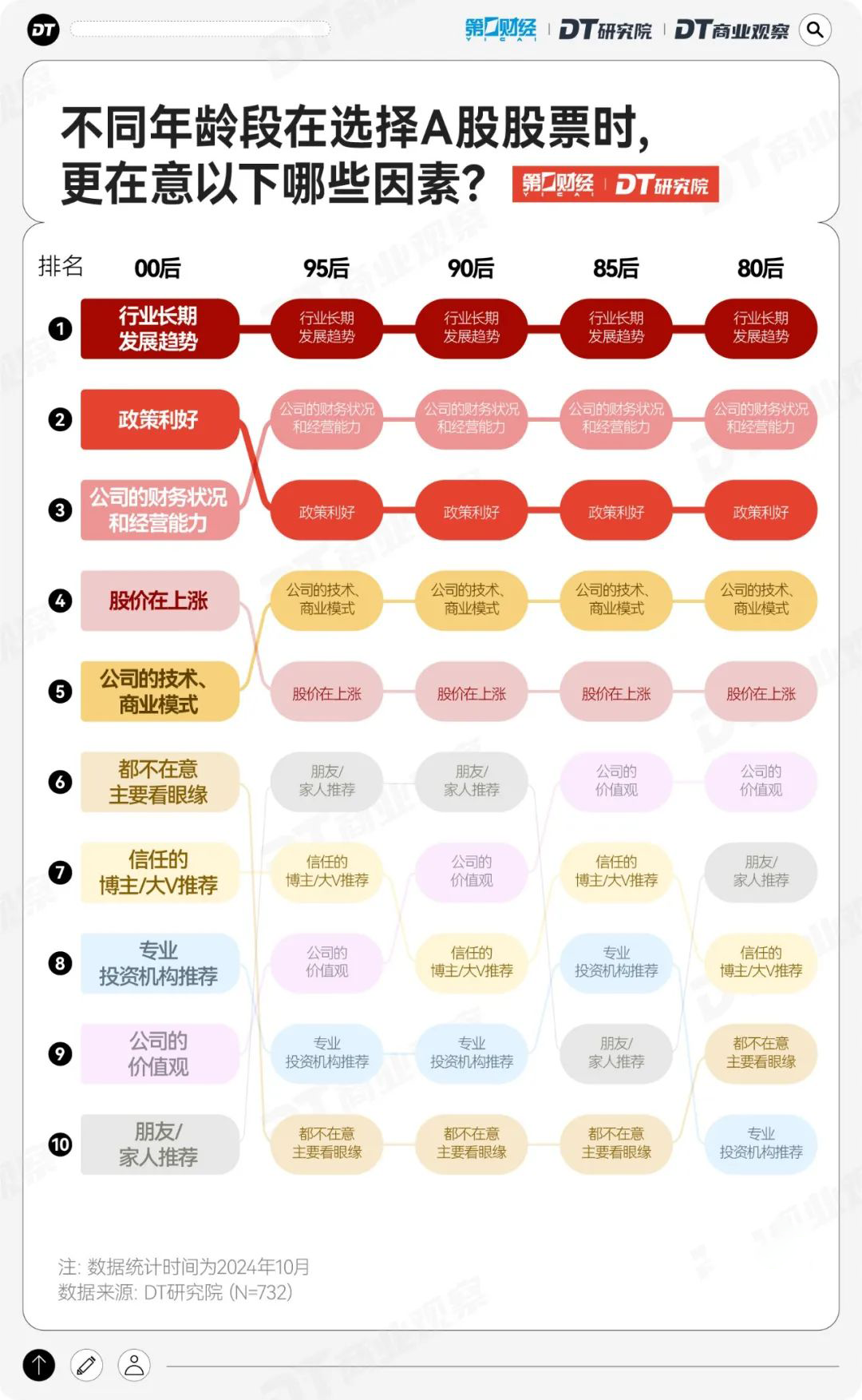不過,在投資股票時,00后考慮的因素,與其他年齡段人群有所不同。