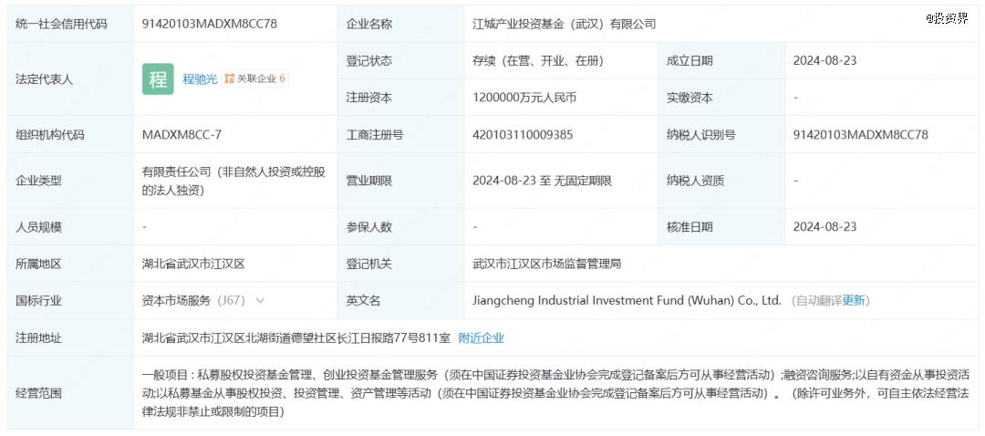 投資界-解碼LP獲悉,武漢投資平臺——江城產(chǎn)業(yè)投資基金(武漢)有限公司成立,注冊資本120億人民幣,由武漢金融控股(集團(tuán))有限公司(簡稱“金控集團(tuán)”)全資持股,后者由武漢市國資委實(shí)際控制。