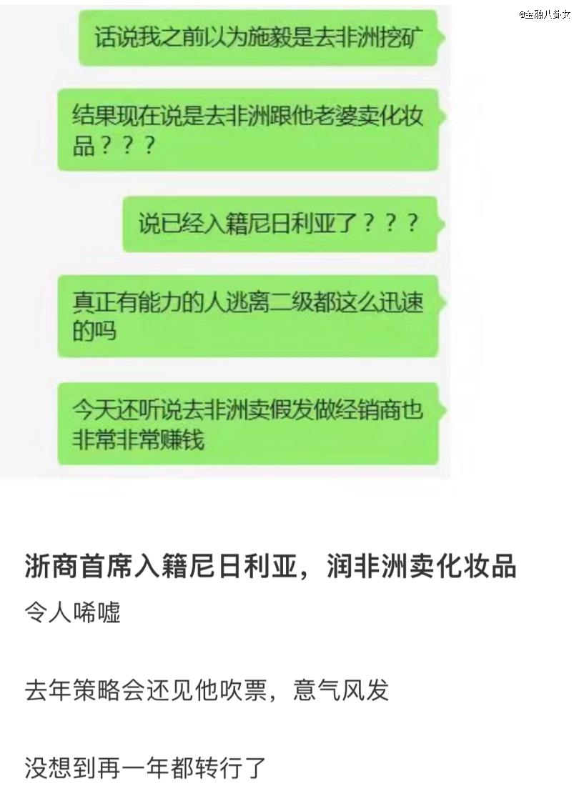 不僅如此,施首席還在朋友圈里透露,他已經(jīng)拿到了尼日利亞的綠卡,且所在公司正在裝修過程中。