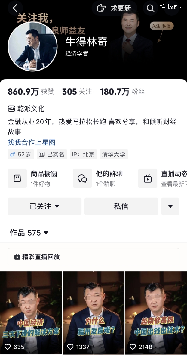 還有原恒泰證券總裁牛壯,年薪曾高達500萬,結(jié)果不做高管做網(wǎng)紅,離職后成了抖音財經(jīng)博主,一邊拍短視頻一邊直播,目前粉絲已經(jīng)超過了180萬。