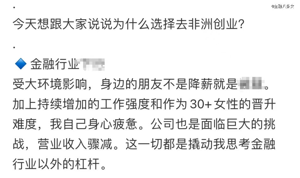 不過,施首席并不算是金融圈打工人去非洲創(chuàng)業(yè)的*人。八妹發(fā)現(xiàn),在小紅書上,也有類似的案例。
