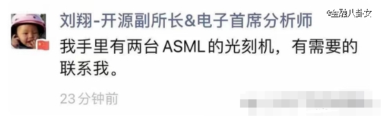 比如曾經(jīng)的開源證券研究所副所長、電新首席分析師劉翔,別看名不見經(jīng)傳,但在金融圈也留下過傳說,是*個公開售賣ASML光刻機的首席。