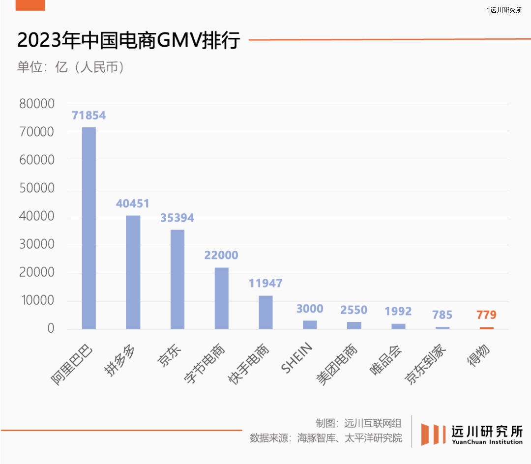 被一群愛(ài)潮牌的直男托舉出道后,得物一步步破圈,不僅男女用戶(hù)的比例接近1:1,非潮流球鞋類(lèi)目的占比也過(guò)半[11]。2023年達(dá)成779億GMV、2024年接近破億的月活,使其在巨頭包夾的電商紅海也能排上名次。