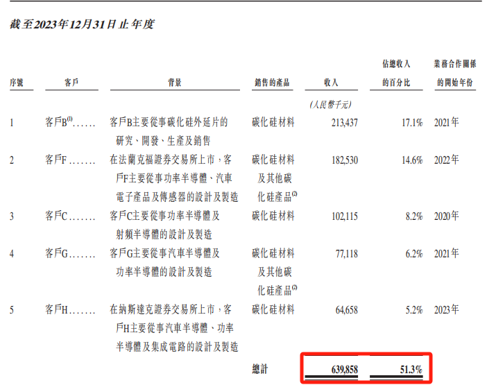 2022年,2023年及2024年前三季度,天岳先進(jìn)來自前五大客戶的收入,占總收入的比例分別為65.0%、51.3%及53.2%。