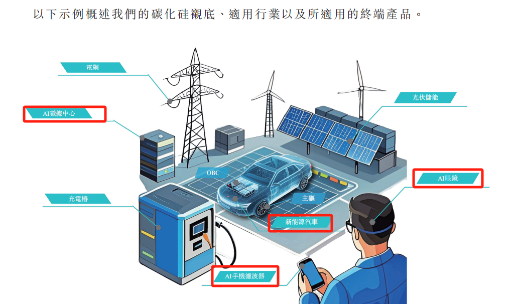 招股書顯示,天岳先進(jìn)是全球?qū)捊麕О雽?dǎo)體材料行業(yè)領(lǐng)軍企業(yè),專注于高質(zhì)量碳化硅襯底的研發(fā)與產(chǎn)業(yè)化,為新能源與AI產(chǎn)業(yè)提供核心支撐,包含電動(dòng)汽車、AI數(shù)據(jù)中心、AI眼鏡等領(lǐng)域。