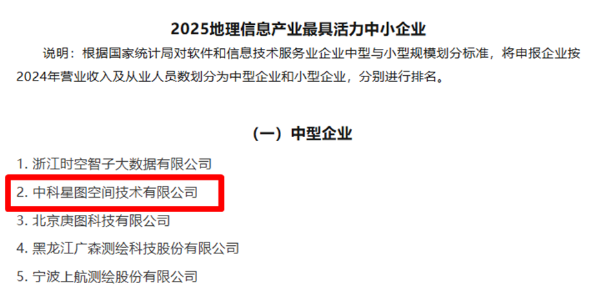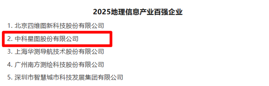 近日,中國地理信息產(chǎn)業(yè)協(xié)會發(fā)布了2025地理信息產(chǎn)業(yè)百強企業(yè)、最具活力中小企業(yè)、最具成長性企業(yè)等榜單。中科星圖股份有限公司(簡稱“中科星圖”)榮登“2025地理信息產(chǎn)業(yè)百強企業(yè)”榜單第二位;中科星圖旗下中科星圖空間技術(shù)有限公司(簡稱“星圖空間”)榮登“2025地理信息產(chǎn)業(yè)最具活力中小企業(yè)(中型企業(yè))”榜單第二位。同時,中科星圖與星圖空間也共同入選“2025地理信息產(chǎn)業(yè)最具成長性企業(yè)”榜單。