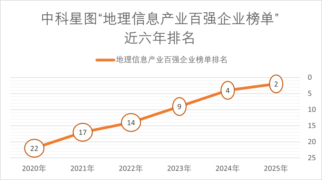 (中科星圖近六年榮獲地理信息產(chǎn)業(yè)百強企業(yè)榜單排名變化)