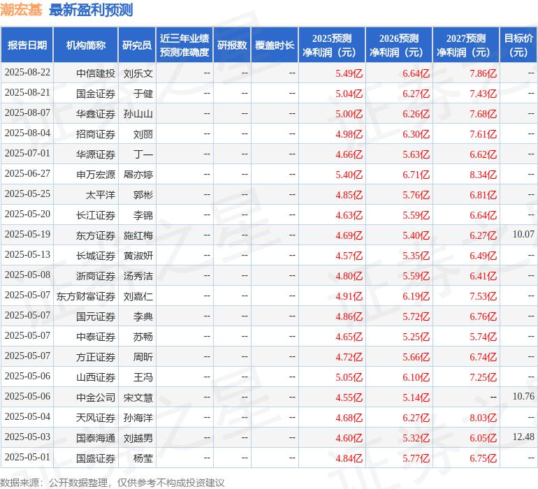 最新盈利預(yù)測(cè)明細(xì)如下: