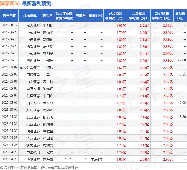 最新盈利預(yù)測(cè)明細(xì)如下: