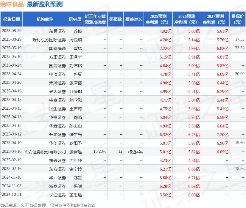 公司2025H1實(shí)現(xiàn)收入28.2億元,同降15.6%,歸母凈利潤1.75億元,同降40.7%;其中2025Q2實(shí)現(xiàn)收入13.2億元,同降19.8%,歸母凈利潤0.55億元,同比下滑57.6%。公司門店經(jīng)營仍有壓力,我們下調(diào)公司2025-2027年盈利預(yù)測,預(yù)計(jì)分別實(shí)現(xiàn)歸母凈利潤3.9(-2.4)、5.0(-1.8)、5.3(-1.9)億元,同增73.4%、26.7%、6.4%,當(dāng)前股價(jià)對應(yīng)PE分別為25.0、19.7、18.5倍,公司作為行業(yè)龍頭,調(diào)整門店經(jīng)營策略,鹵味行業(yè)集中度有望進(jìn)一步提升,美食生態(tài)圈企業(yè)有望逐步恢復(fù),維持“增持”評級。