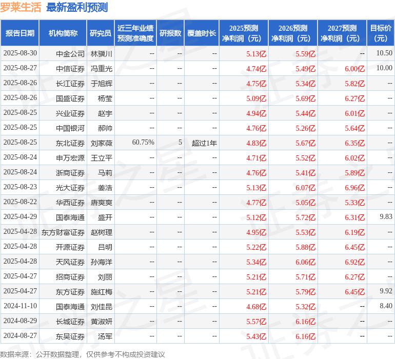 最新盈利預(yù)測(cè)明細(xì)如下: