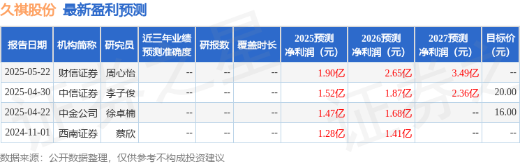 最新盈利預測明細如下: