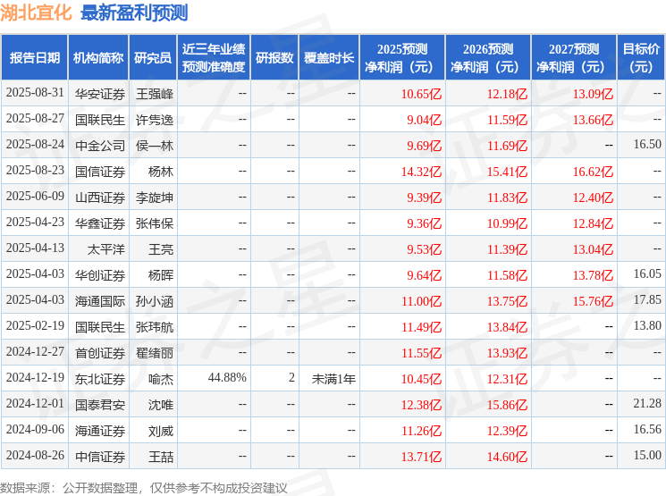 最新盈利預(yù)測(cè)明細(xì)如下: