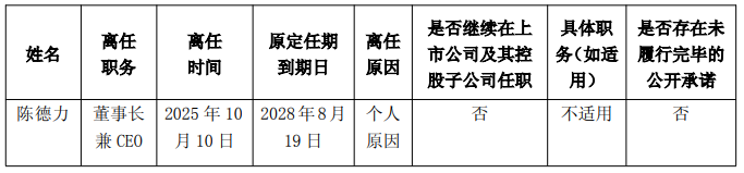 10月10日盤后,大商股份(600694)發(fā)布公告稱,公司于近日收到陳德力的書面報(bào)告。陳德力因個(gè)人原因無法繼續(xù)履職,申請(qǐng)不再擔(dān)任公司董事長、CEO以及董事會(huì)專業(yè)委員會(huì)內(nèi)一切職務(wù),后續(xù)將不在公司其他崗位任職。