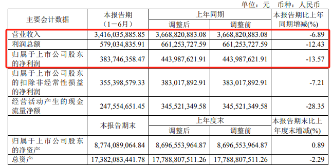 然而,陳德力上任之后的首份半年報(bào)顯示,公司營收凈利雙雙下滑。公司實(shí)現(xiàn)營業(yè)收入34.16億元,同比下降6.89%;歸母扣非凈利潤為3.55億元,同比下降7.21%。