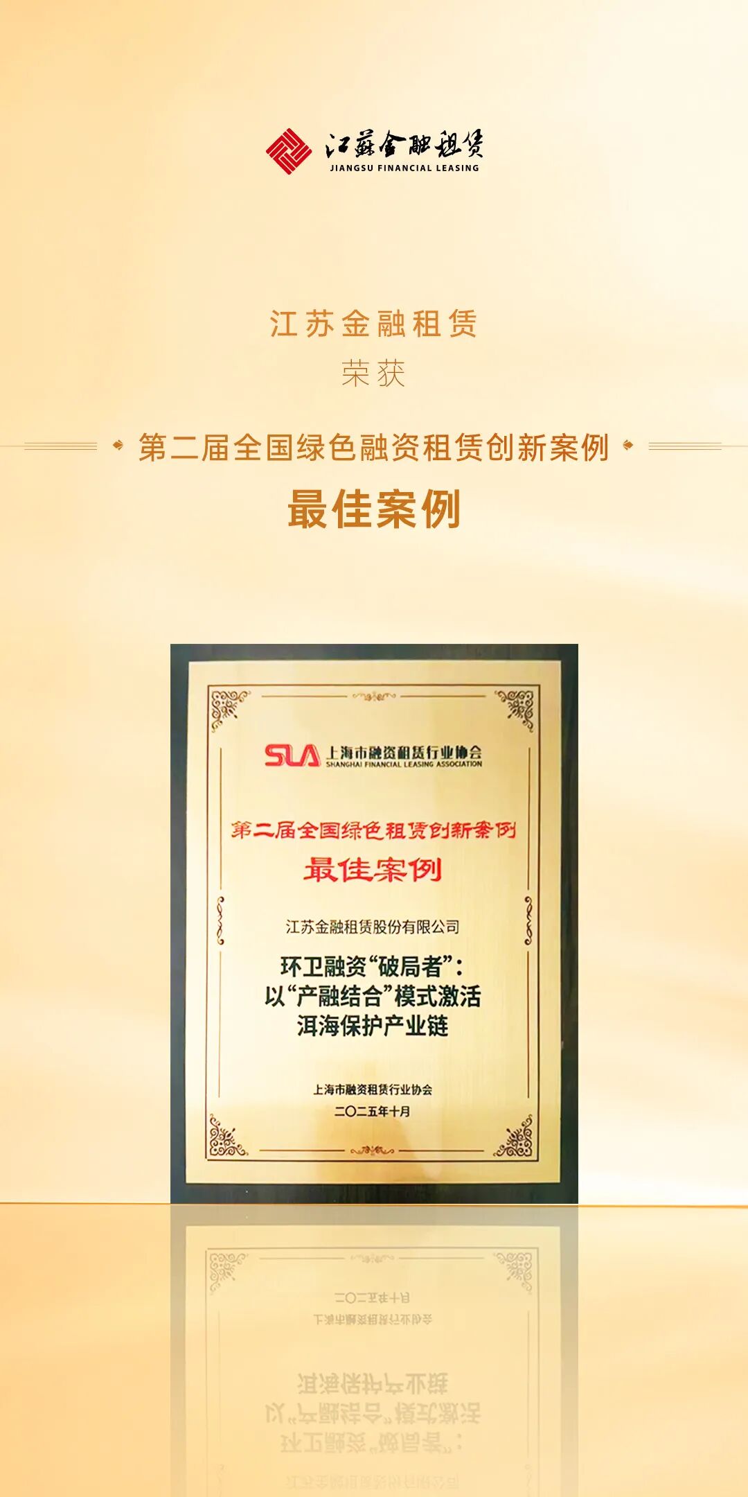 10月23日,首屆中國綠色租賃創(chuàng)新發(fā)展年會(huì)(2025)暨長三角G60科創(chuàng)走廊ESG發(fā)展聯(lián)盟合作交流大會(huì)在上海成功舉行。江蘇金融租賃股份有限公司(以下簡稱“江蘇金租(600901)”)憑借其在綠色金融領(lǐng)域的創(chuàng)新實(shí)踐與突出貢獻(xiàn),躋身“中國綠色租賃50強(qiáng)”,選送的“環(huán)衛(wèi)融資‘破局者’:以‘產(chǎn)融結(jié)合’模式激活洱海保護(hù)產(chǎn)業(yè)鏈”項(xiàng)目榮獲“第二屆全國綠色融資租賃創(chuàng)新案例——最佳案例”。此次雙項(xiàng)榮譽(yù)的取得,標(biāo)志著江蘇金租積極服務(wù)金融“五篇大文章”,在綠色金融方面取得了扎實(shí)成效,展現(xiàn)了融資租賃服務(wù)實(shí)體經(jīng)濟(jì)的綠色擔(dān)當(dāng)。