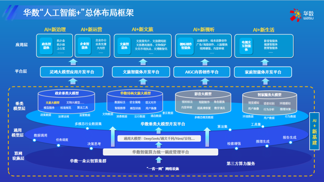 華數(shù)此次成功牽頭和參與以上多項“尖兵”項目,其核心基礎(chǔ)在于前瞻性地在“人工智能+”與“視聽+文旅”領(lǐng)域進行了戰(zhàn)略布局、技術(shù)攻關(guān)與實踐積累。近年來,華數(shù)始終堅持“文化+科技”的融合發(fā)展路徑,將實施“人工智能+”戰(zhàn)略作為驅(qū)動企業(yè)轉(zhuǎn)型升級的關(guān)鍵抓手,全面推進數(shù)智化發(fā)展,取得了系列標志性成果。
