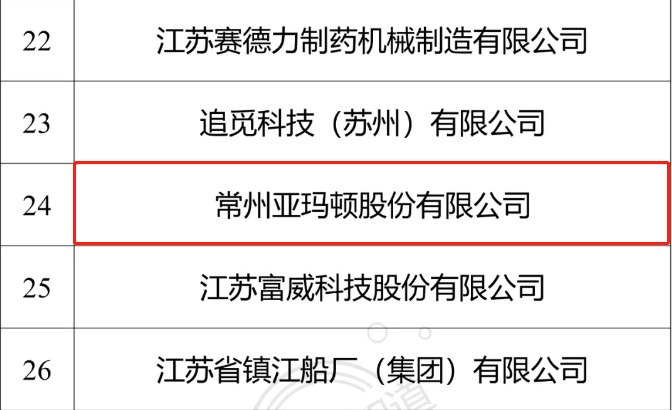 近日,江蘇省工信廳公示了省級制造業(yè)領(lǐng)航企業(yè)名單(第二批)。常州亞瑪頓(002623)股份有限公司憑借其在技術(shù)創(chuàng)新、智能制造、產(chǎn)業(yè)帶動等方面的卓越表現(xiàn),成功獲評。