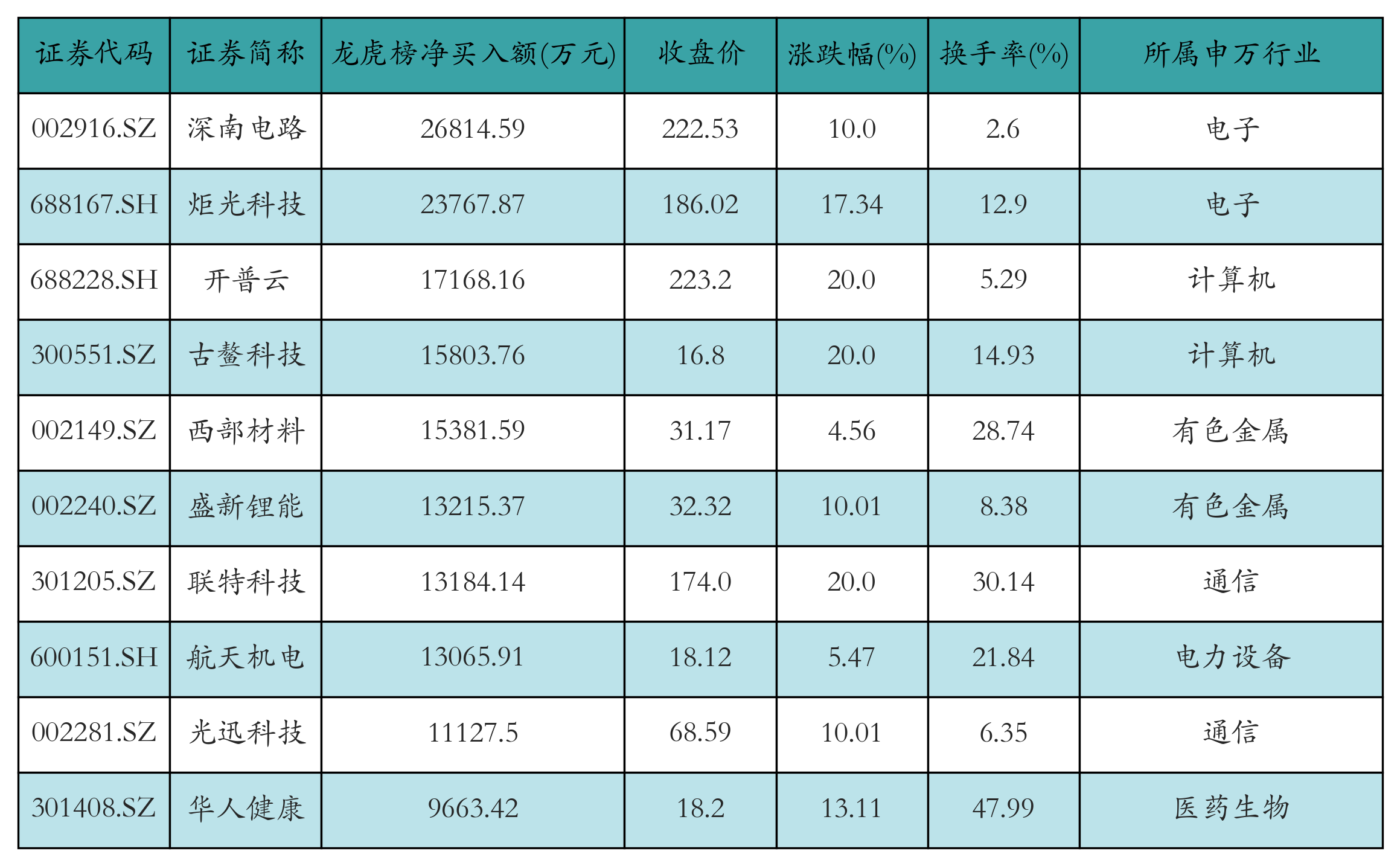 四、龍虎榜情況